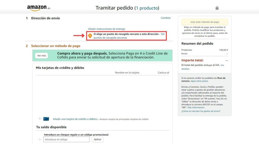 2º Elegiremos un punto de recogida cercano «Ver puntos de recogida cercanos».